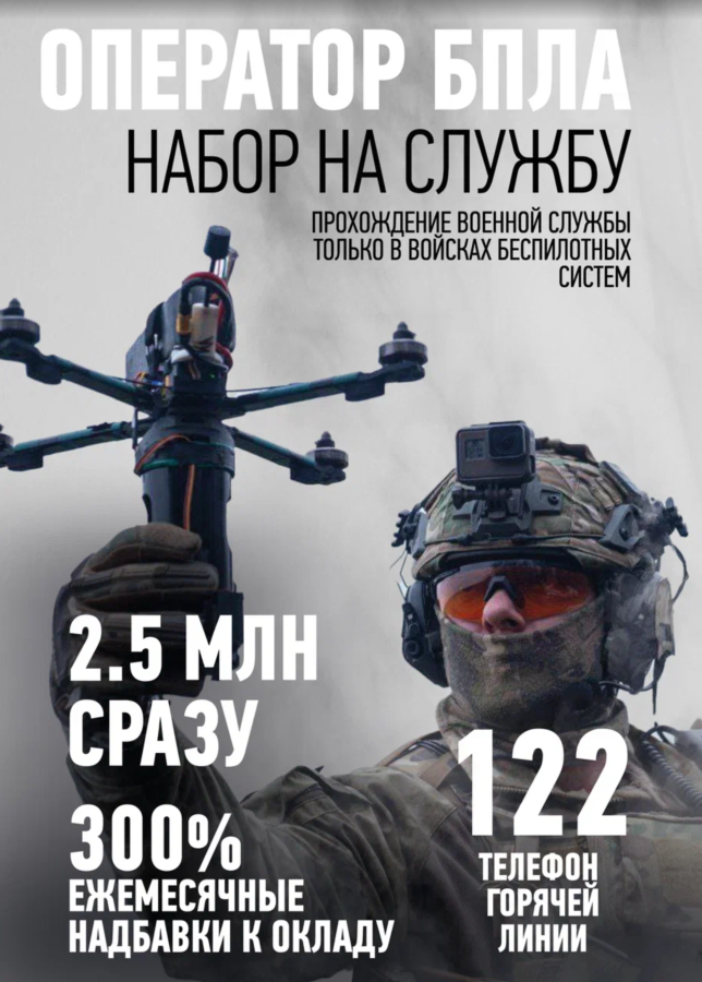Заключите контракт с Министерством обороны и войдите в состав войск беспилотных систем! Узнать подробности можно по телефону 122.