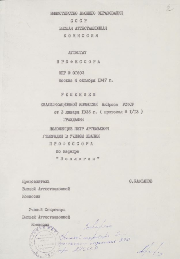 Петр Артемьевич Положенцев родился 16 октября (28 октября – по новому стилю) 1900 года в с. Карабаевка Бугуруславского уезда Самарской губернии (ныне – Сергиевского района Самарской области) в семье крестьянина. Трудовую деятельность Петр Артемьевич начал рано, уже с 11 лет работал на фабрике и в магазинах частных владельцев. В 1920 году Положенцев поступил на рабфак Самарского университета, а в 1923 году, обучаясь в Ленинградском лесном институте, начал заниматься научной деятельностью. После окончания института трудился научным сотрудником на различных должностях. В январе 1935 года Петру Артемьевичу присвоили звание профессора, без защиты диссертации. В 1945 году П.А. Положенцев получил научную степень доктора сельскохозяйственных наук.