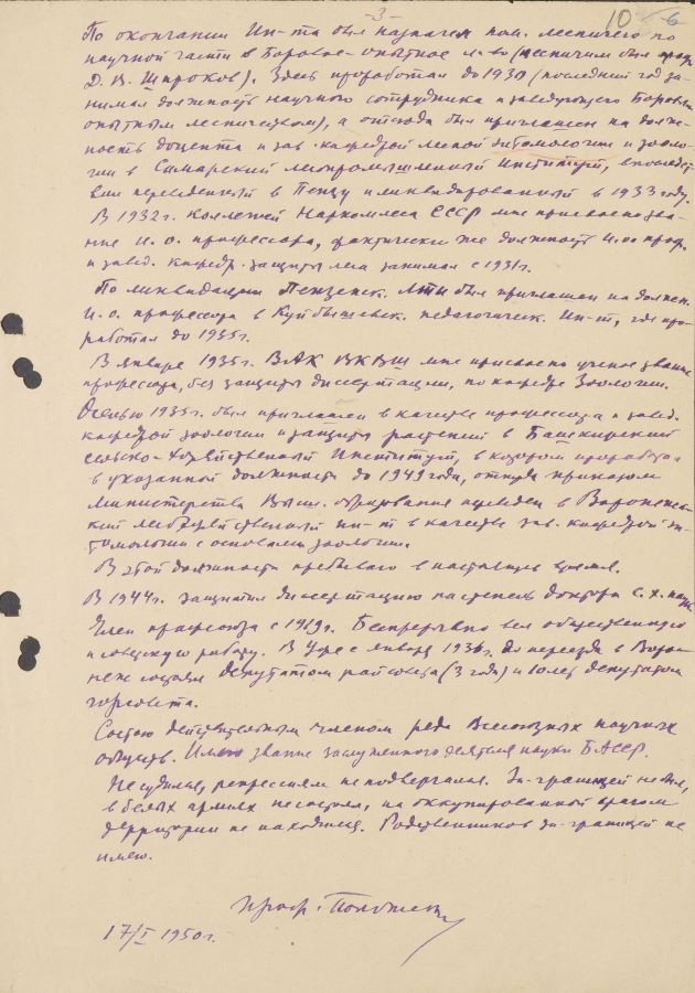 В 1948 году был назначен на должность заведующего кафедрой энтомологии и основам зоологии в Воронежский лесотехнический институт, также по совместительству был профессором кафедры зоологии Воронежского педагогического института.