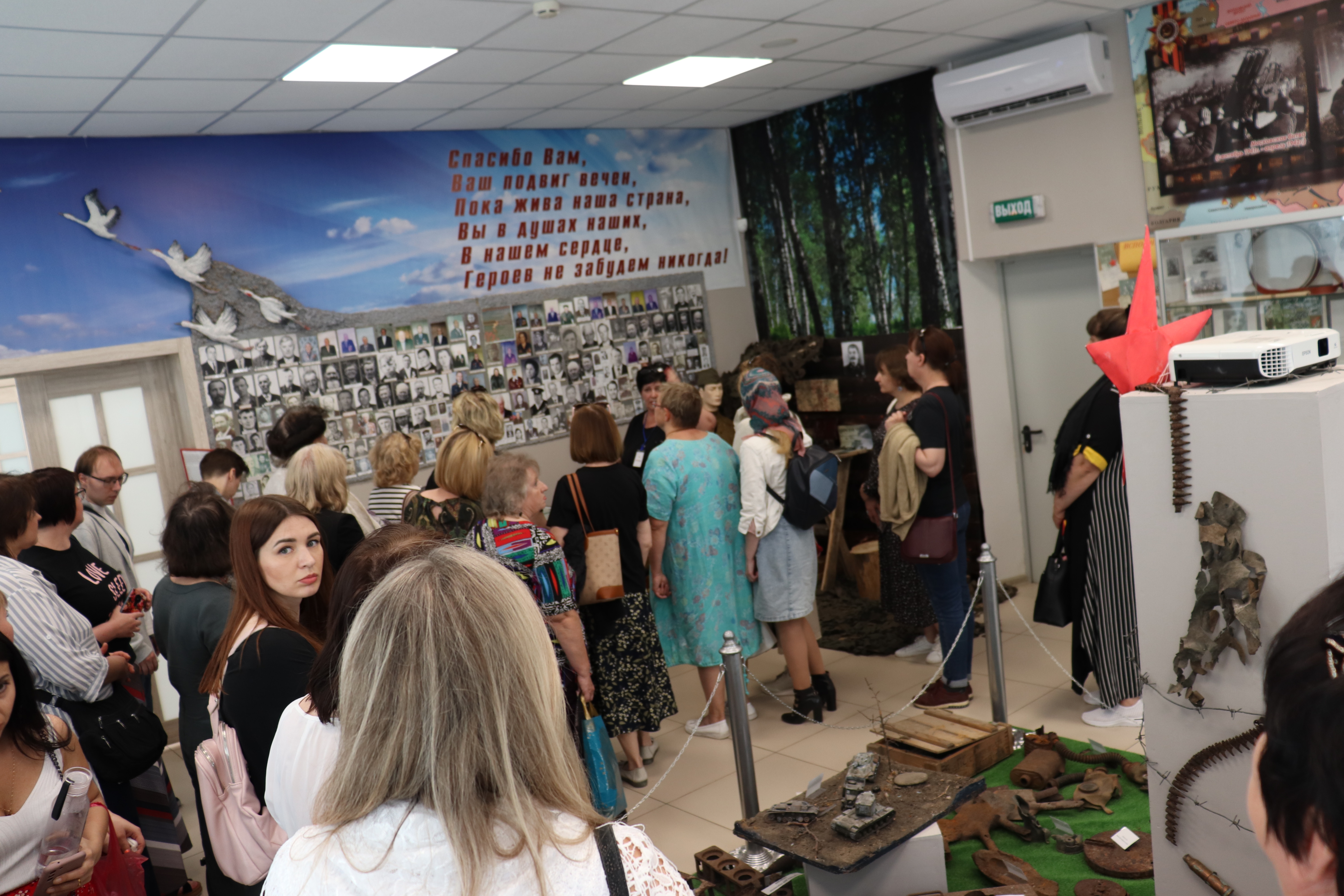 Сотрудники Отрадненского краеведческого музея провели гостям познавательную экскурсию и позволили прикоснуться к истории родного края. Людмила Тимофеевна Кокина, директор музея,  познакомила посетителей с экспозицией этнографии и быта и рассказала о народных костюмах жителей Воронежской губернии и о буднях крестьянской семьи на рубеже XIX-XX вв. Также в «Комнате старины» архивисты смогли увидеть деревянные ступы, кухонную утварь, стиральную доску, прялки и прочие бытовые предметы вековой давности. В зале боевой Славы гостям представили экспонаты периода Великой Отечественной войны: плащ- палатки, солдатские каски, трофейные документы. Все предметы экспозиции были найдены на территории Воронежской области.