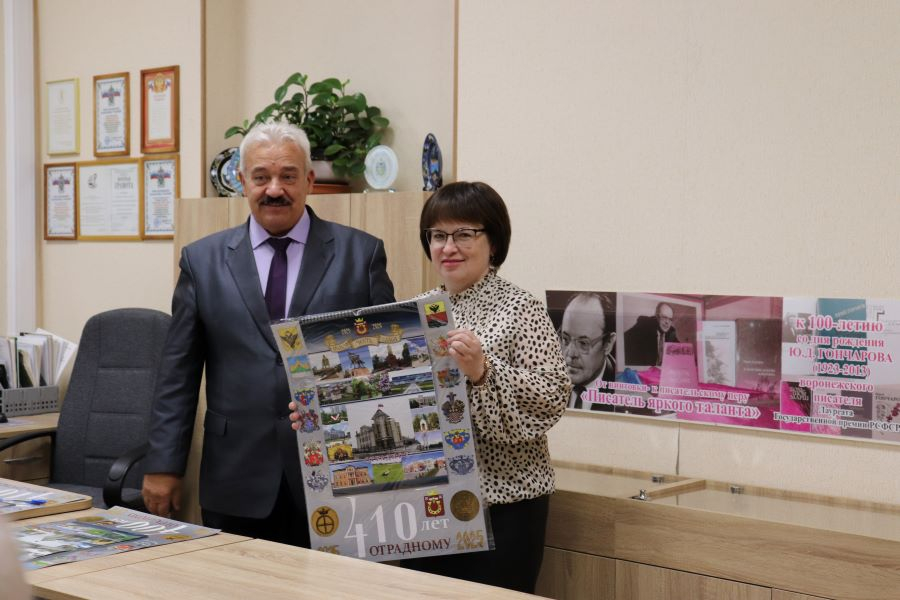 24 октября 2025 г. в читальном зале Государственного архива Воронежской области по инициативе Правления Воронежского областного отделения Российского общества историков-архивистов состоялась презентация исторического календаря «410 лет Отрадному». Составитель и автор текста календаря – Расторгуев Валерий Иванович, председатель президиума Воронежского областного совета краеведов, член регионального отделения РОИА. На презентации присутствовали Авраменко Андрей Михайлович, представитель администрации п. Отрадное, Символокова Лариса Владимировна, заместитель директора Воронежской областной универсальной научной библиотеки им. И.С. Никитина, Плотникова Вера Михайловна, руководитель Воронежского регионального общественного движения «Женское единство», Рыбянцев Владимир Егорович, офицер-подводник ВМФ СССР и России, капитан 2 ранга,  сотрудники архива.