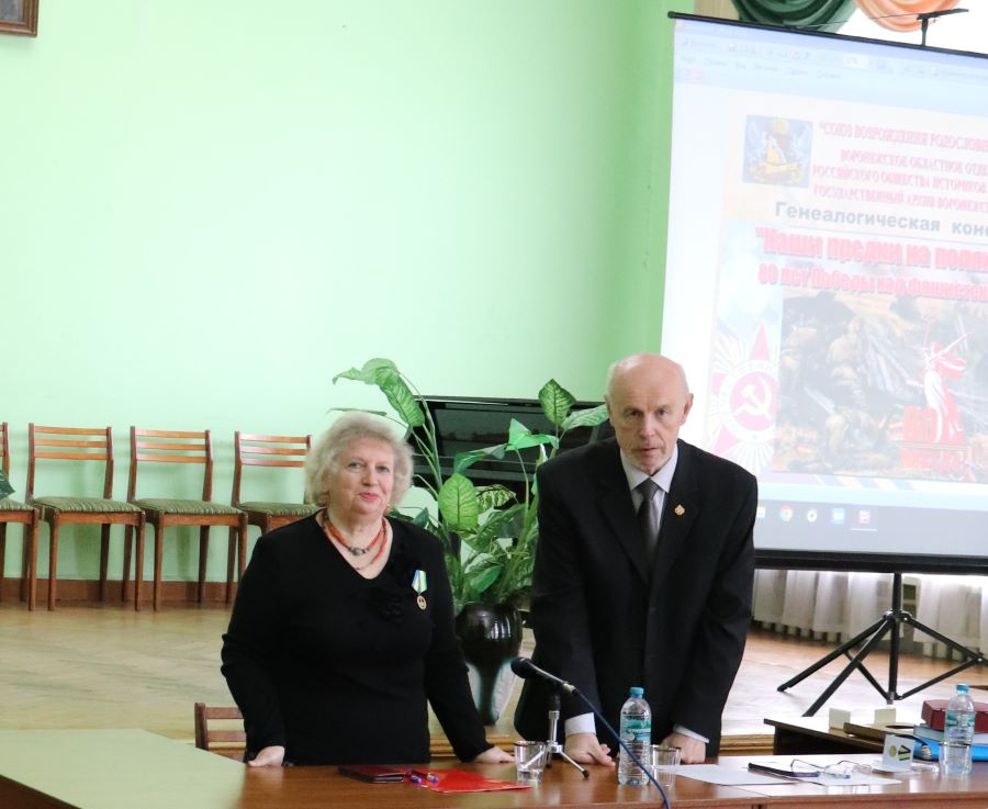 В рамках XVI Всероссийской генеалогической выставки в Воронежской областной универсальной научной библиотеке им. И.С. Никитина состоялась генеалогическая конференция «Наши предки на полях сражений: 80 лет Победы над фашистской Германией». В работе конференции участвовали ученые, генеалоги, краеведы из Воронежа, Москвы, Вологды, Нововоронежа и др. городов. Докладчики рассказали о своих предках – участниках Великой Отечественной войны.